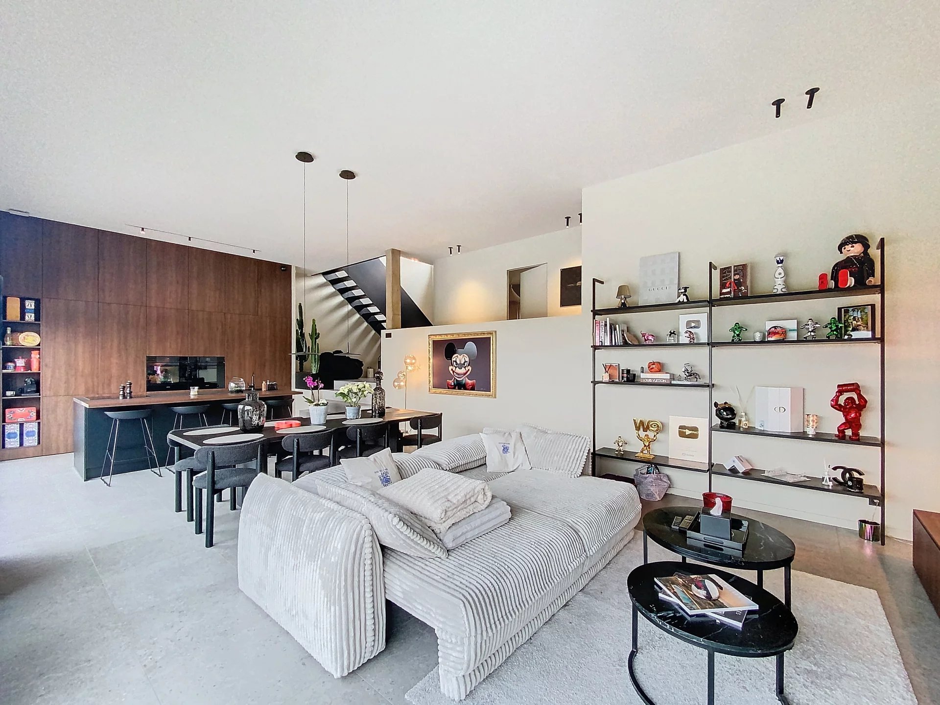 Vous trouverez une pièce de vie de plus de 50 m² comprenant une cuisine entièrement équipée avec des matériaux de qualité, un îlot central avec espace dinatoire, un coin salle à manger avec une table sur mesure pour des repas conviviaux en famille, ainsi qu’un séjour confortable.